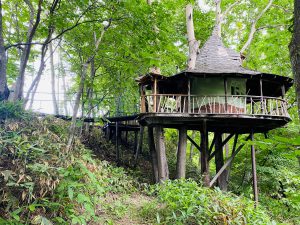 そらぷちは広い大自然の中にあり、森にはツリーハウスがあります。